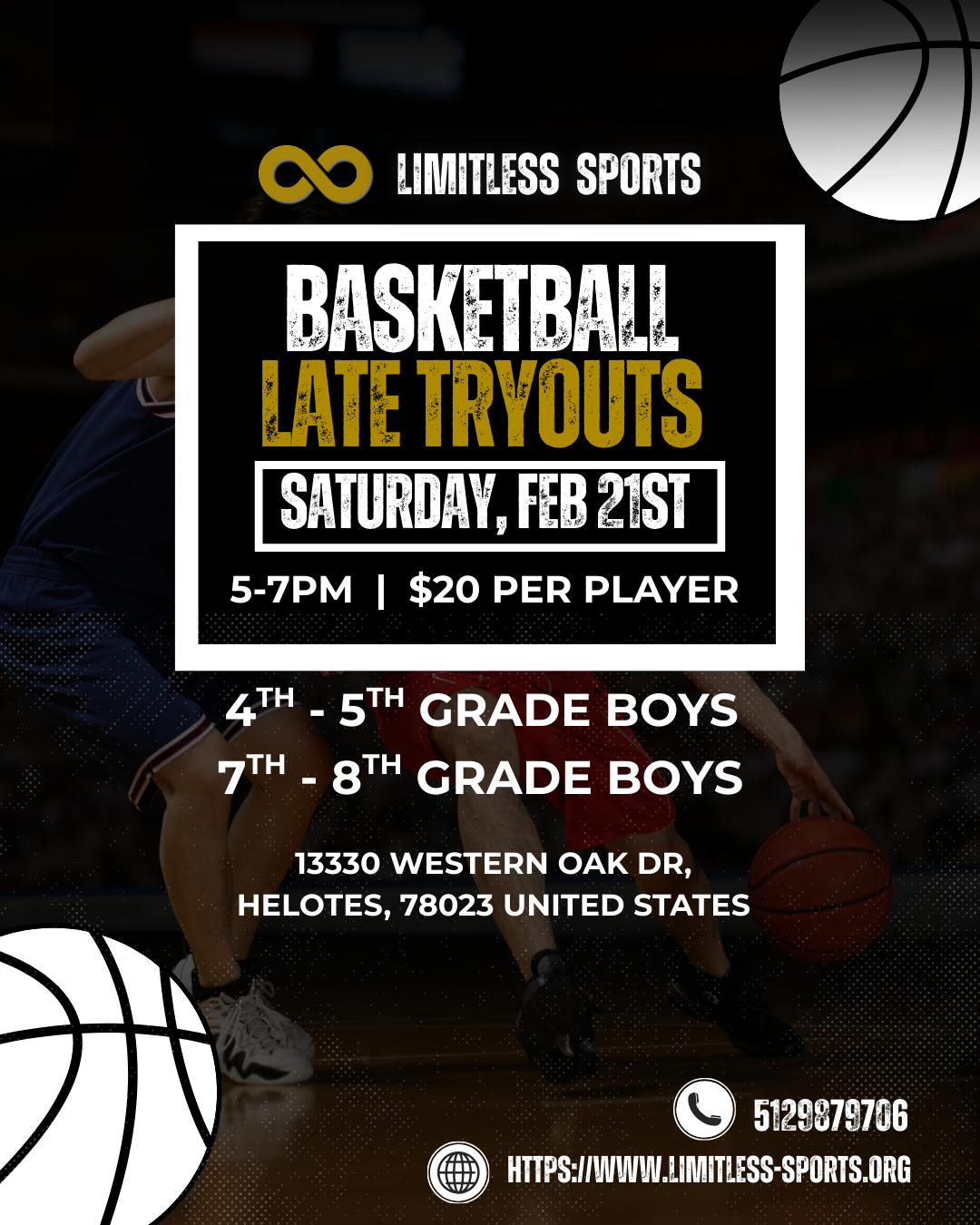 Limitless Sports is an AAU organization focused on competitive development across the San Antonio area. Our teams practice twice a week and participate in approximately 8–10 tournaments throughout the season. The AAU season will run from March through August 2026, providing athletes with consistent training and competitive opportunities.